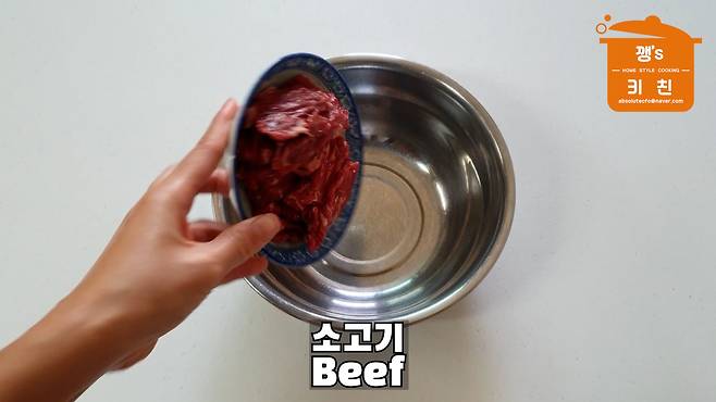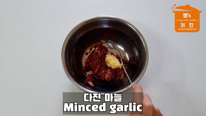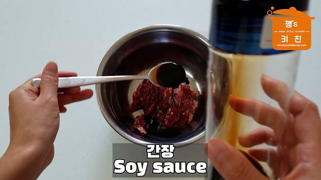 소고기에 간장 1큰술, 다진 마늘 1큰술,