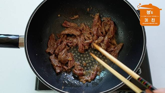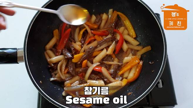 고기가 익으면 참기름 1큰술을 넣고