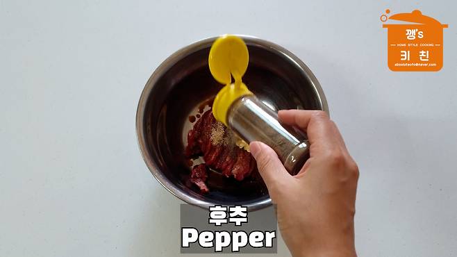 설탕 반큰술, 후추를 넣고