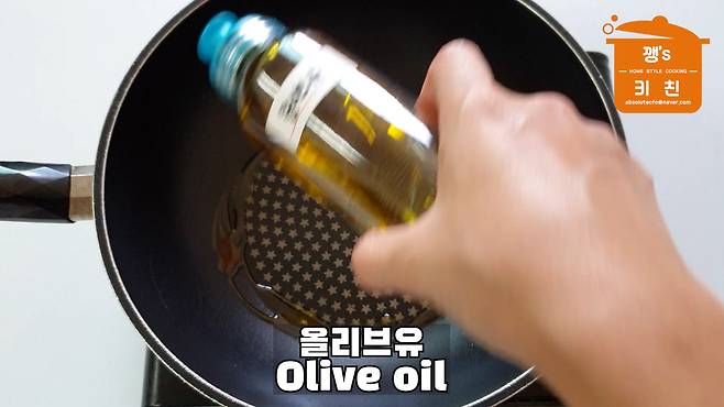 달군 팬에 올리브유나