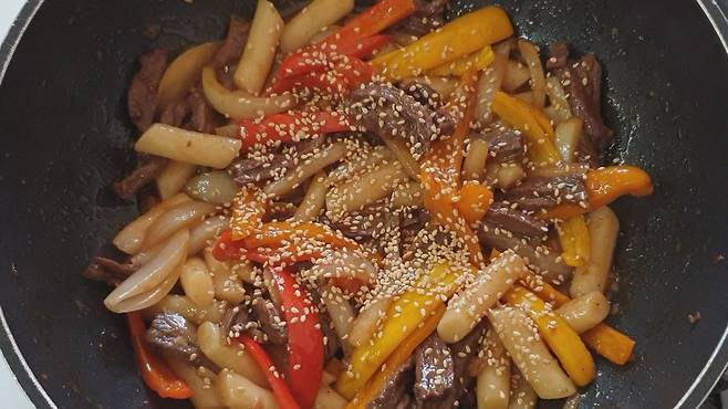 짭짤하고 고소한 떡잡채 완성이에요