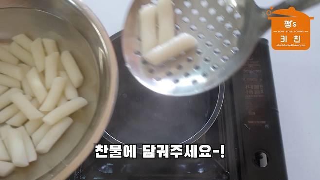 찬물에 담가뒀던 떡도 건져내