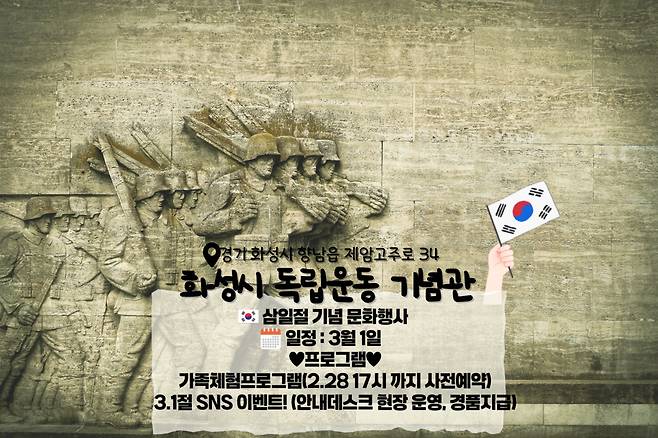 삼일절 기념식 / 10:00-11:00방문이벤트 / 2.22~3.9 손태극기 증정모바일 미션게임 / 3.30 까지 기념관 내 퀴즈풀이 진행