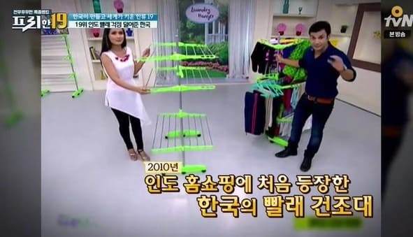 몬순 기후 탓에 3개월 내내 비가 내리는데다 세탁기 보급률이 낮아, 탈수하지 않은 큰 빨랫감을 그대로 말리는 인도의 주거 환경. 이런 환경에 딱 맞는 한국의 아이템이 있었죠. 바로 빨래건조대입니다. 이 전에는 빨랫감을 집 앞에 걸어놨고 비가 내리면 다 젖을 수 밖에 없었다고 하는데요.