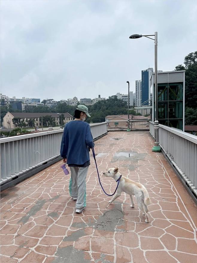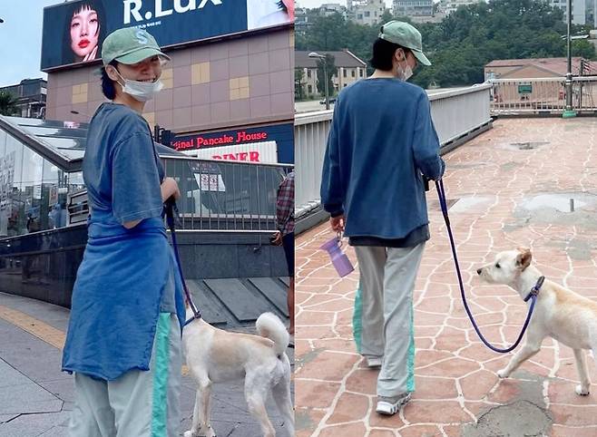 여기에 실용적인 운동화와 간단한 강아지 산책 용품까지, 기능성과 스타일을 동시에 잡은 이 룩은 친근한 매력을 뽐내며 공감을 자아냈습니다.