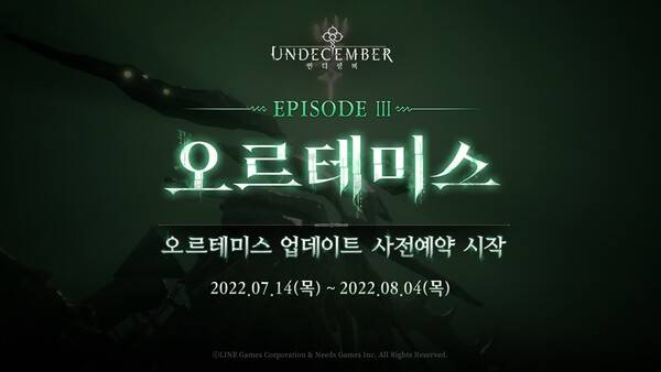 라인게임즈는 니즈게임즈에서 개발하고 자사가 서비스하는 멀티플랫폼 핵앤슬래시 액션 RPG '언디셈버'의 신규 에피소드 '오르테미스' 대규모 업데이트에 앞서 사전예약을 시작했다.