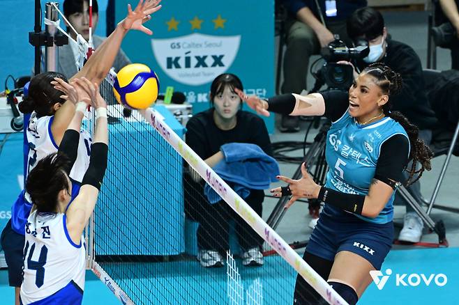 그야말로 괴력이다. '득점 기계' 지젤 실바(35)가 단기전에서 더 막강한 공격력을 발휘하고 있다. GS칼텍스 '우승 청부사' 계보에 이름을 올리려 한다.
