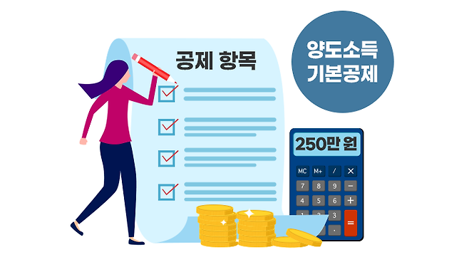 양도소득세를 계산할 때는 먼저 1년간 250만 원의 양도소득 기본공제를 인정합니다.