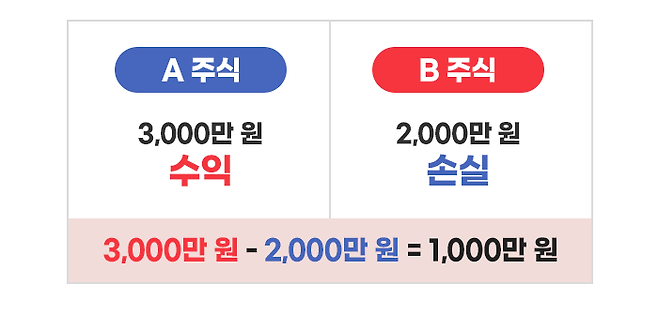 또한, 같은 해에 발생한 양도차익과 양도차손은 합산, 즉 1년 동안 (+)수익 부분과 (-)손실 부분을 합산하여 순수익 부분에 대해서만 과세합니다. 이를 손익통산이라고 합니다.