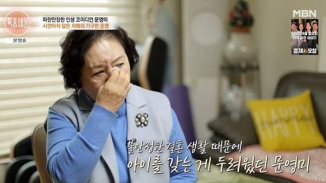 코미디언 문영미가 가슴 아픈 사연을 털어놓았다.
