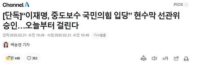 정연욱 국민의힘 의원은 '이재명, 중도보수 국민의힘 입당합니까?' 현수막을 선관위가 허가해 오늘 오후 지역구인 부산 수영구에 게시할 것이라고 밝혔습니다.