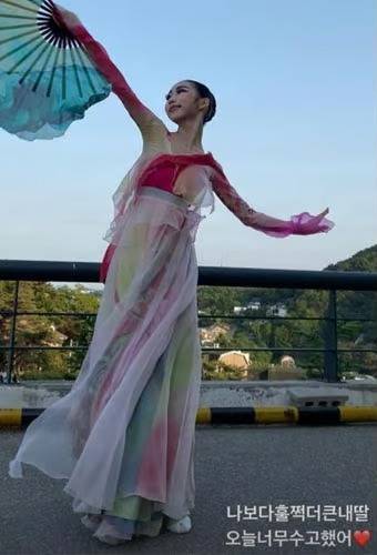 공개된 영상에는 딸 민서 양이 무대에 올라 한국무용을 선보이는 모습이 담겨 있다. 이 무대는 민서 양이 재학 중인 선화예고의 50주년 공연이다.