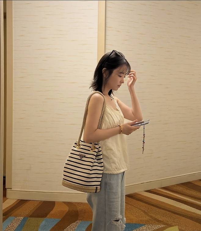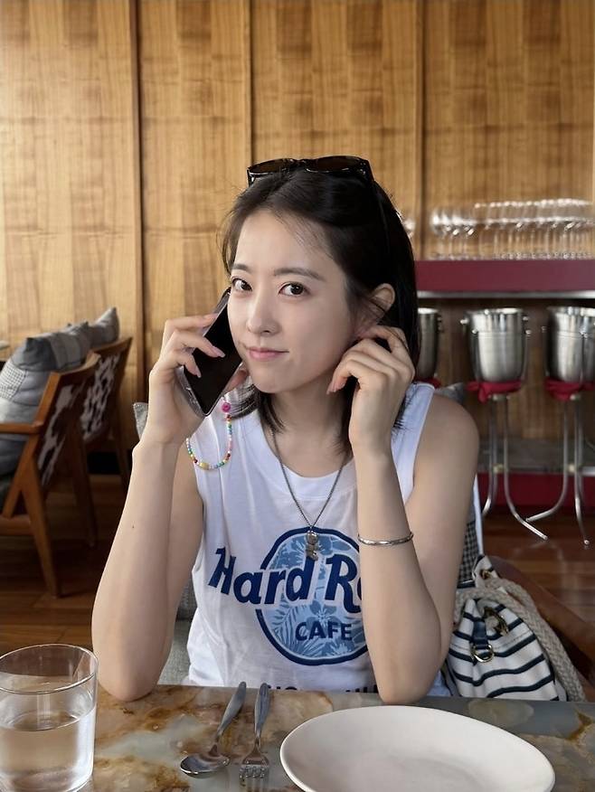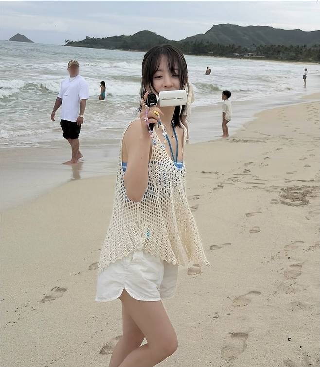 또 빈티지 무드의 카메라와 선글라스, 네트백 같은 소품까지 더해져 여행지 감성이 한층 살아났고, 전체적으로는 소녀 같은 사랑스러움과 휴양지 특유의 여유가 함께 느껴지는 스타일링이었습니다.