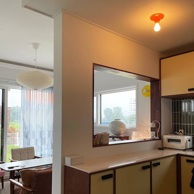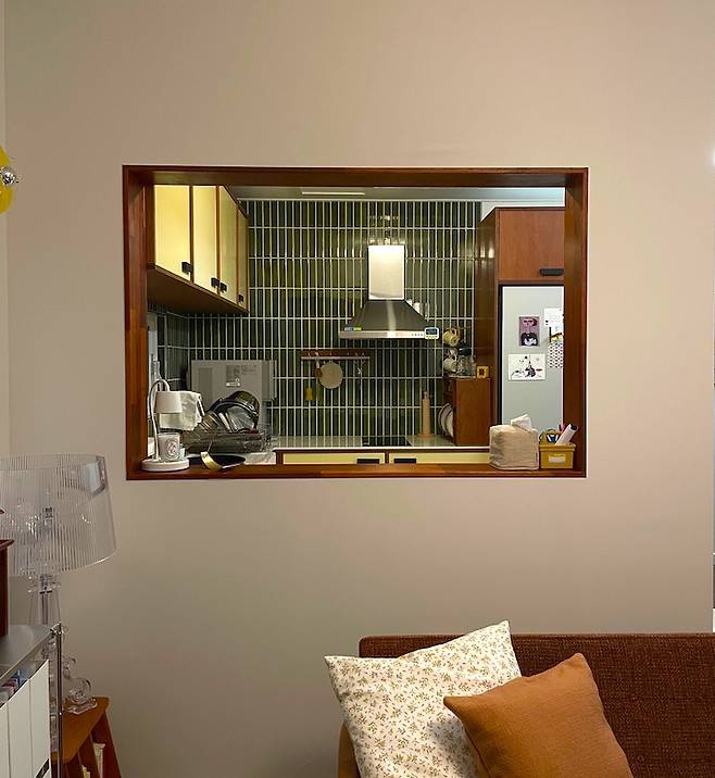 거실과 주방을 분리해 주는 가벽 창이 주는 재미가 쏠쏠해요!