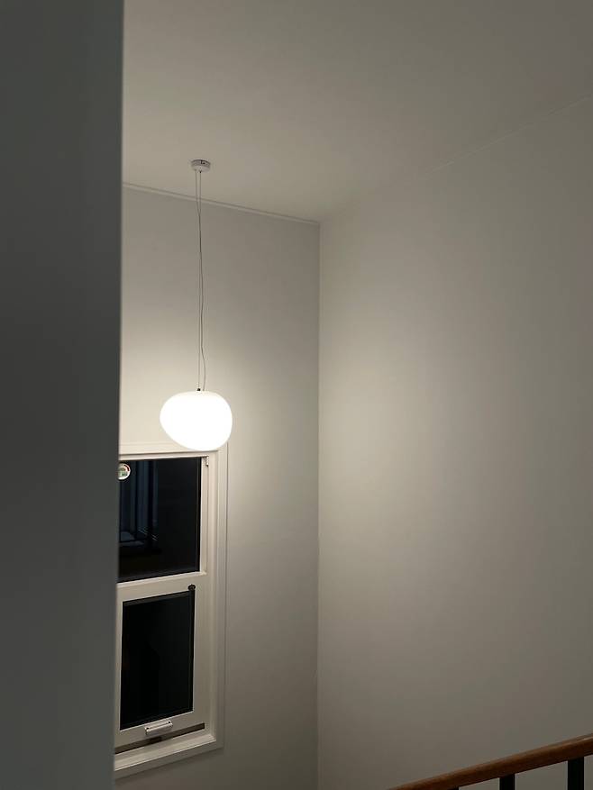 저희 집에서 유일하게 층고가 높은 계단실엔 달이 떠있는 듯한 느낌의 조명을 달아주었어요.