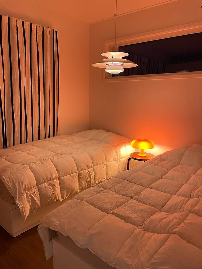 매트리스도 침구도 각자의 취향에 따라 따로 사용 중입니다. 전에는 퀸 사이즈 침대에서 순심이까지 셋이 자느라 불편하고 비좁았는데, 이젠 모두가 평화를 찾았어요.ㅎㅎ