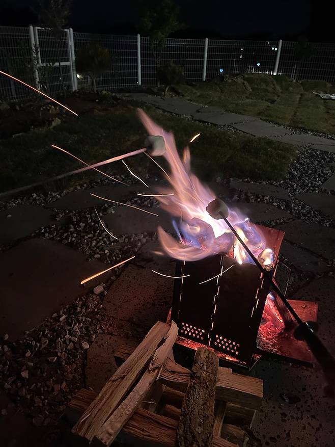 이따금씩 밤의 불멍과 함께하는 마시멜로 구이가 새로운 즐거움이죠! 전 캠핑을 즐기지 않아 잘 알진 못하지만, 이런 낭만을 즐기기 위해 캠핑하는 건가 싶기도 하고요.ㅎㅎ