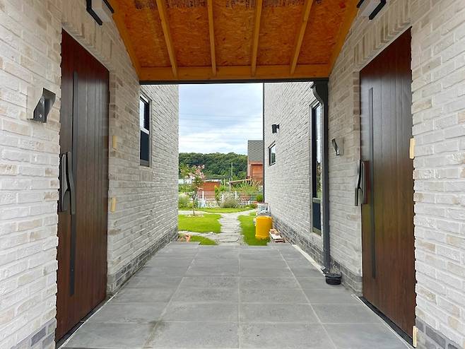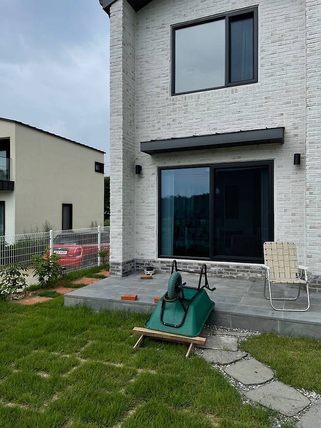 완공 후 건물만 휑하니 두 동 있던 저희 집은 손수 잔디와 벽돌을 깔며 가족들의 피 땀 눈물로 많은 변화를 겪었어요. 가족들의 차를 모두 주차할 만한 넓은 공간이 필요해서, 집 뒤편은 전부 주차공간으로 사용하고 있습니다.