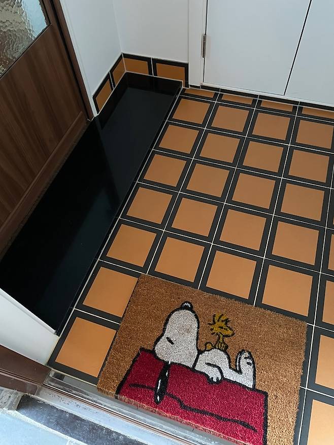 제가 사랑하는 현관 타일입니다. 현관은 집의 첫인상이기에 타일에 힘을 주고 싶어 정말 수십 개의 타일을 보고 또 봤는데요, 어느 날 운명처럼 만나 조금 부담스러운 가격임에도 망설임 없이 값을 지불하게 만들었던 아끼는 타일이에요!