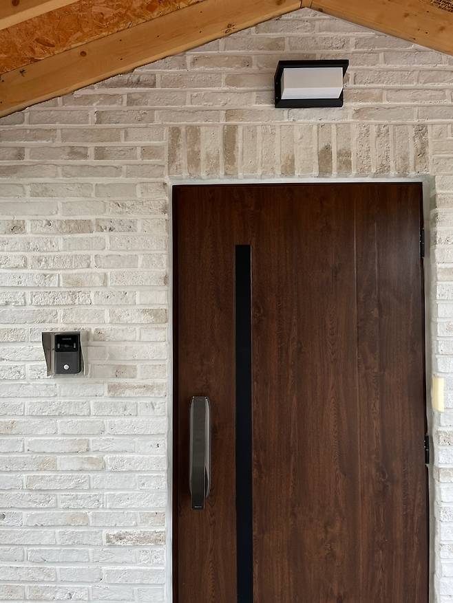 처음엔 적 벽돌이었다가 청고 벽돌로 결정을 바꾸고 마지막엔 백고 벽돌로 최종 시공된 고민 많았던 외관입니다. 살아 보니 관리도 쉽고 때가 타도 잘 티 나지 않는다는 점이 큰 장점이에요! 저희 가족끼리는 하얀 벽돌집이라 부르고 있습니다. :)