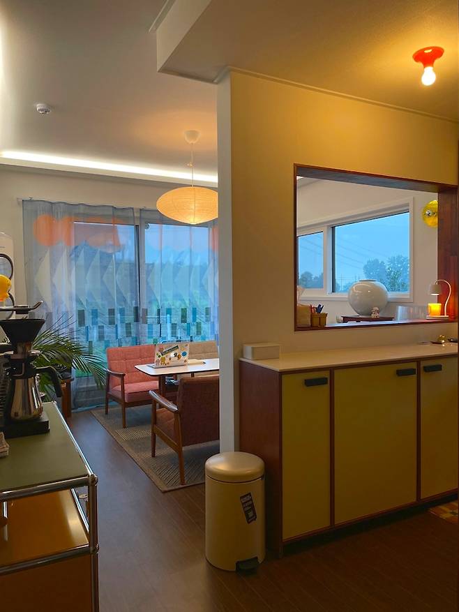거실과 주방을 분리해 주는 가벽 창이 주는 재미가 쏠쏠해요!