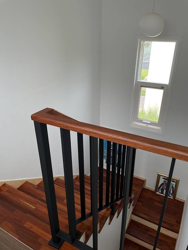 저희 집에서 유일하게 층고가 높은 계단실엔 달이 떠있는 듯한 느낌의 조명을 달아주었어요.