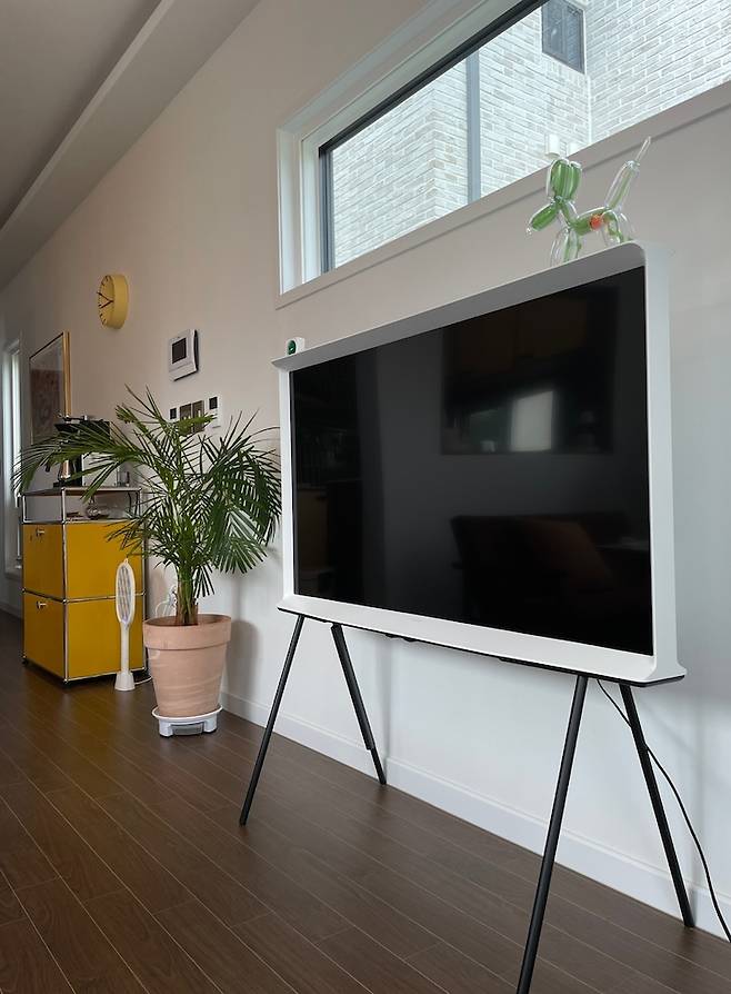 한쪽 벽엔 TV가 존재감을 뽐내고 있습니다. 넷플릭스와 영화, 유튜브를 중독적으로 시청하는 저희 부부에게 없어서는 안 될 소중한 물건이에요.