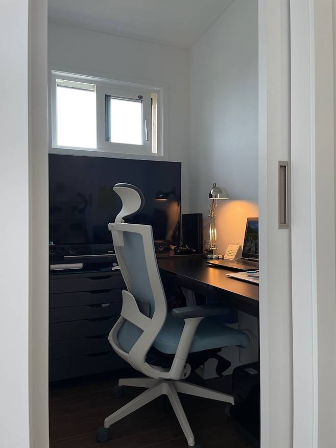바로 저희 남편의 '로망방'이에요. 어디엔가 콕 박혀서 생각할 시간이 많이 필요한 남편을 위해 작지만 남편만을 위한 감옥(?) 같은 공간을 짜 넣었는데요, 한쪽 벽에 커다란 티브이를 놓고 영화도 보고 게임도 하며 행복해하는 남편을 볼 때면 만들어주길 아주 잘 했다는 생각을 합니다.