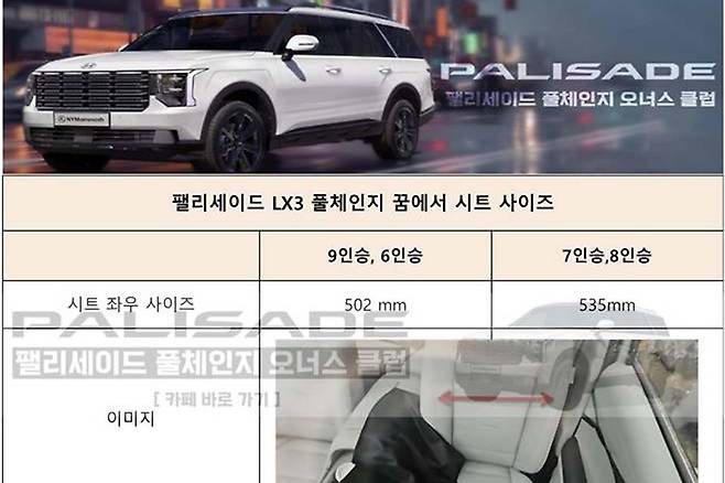 현대차 신형 팰리세이드 디자인과 일부 사양이 공개된 가운데, 시트 구성에 따른 실내 정보가 일부 공개되어 소비자들의 눈길을 끌었다.
