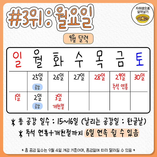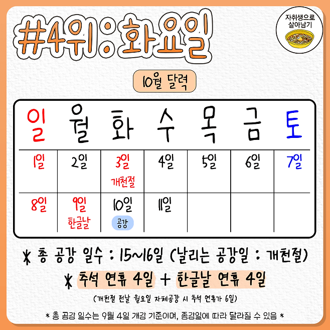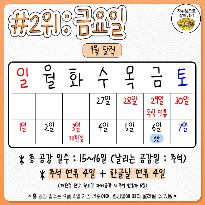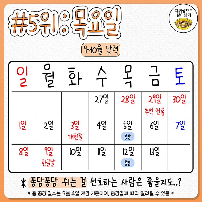 수강신청 전 필독! 2학기 공강 추천 요일 순위는?
