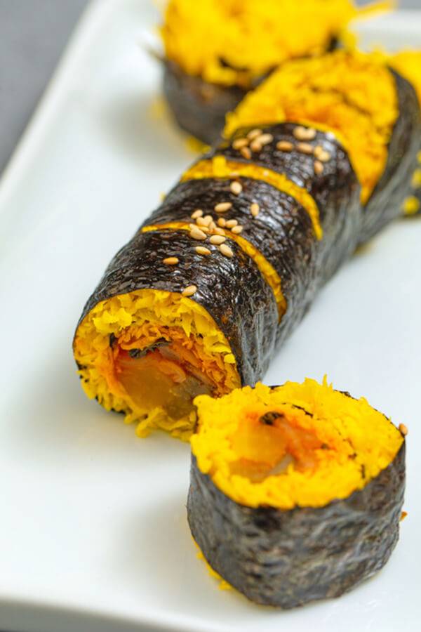 탄수화물 함량이 높은 쌀 대신 계란 지단으로 속을 채워 만든 키토김밥이나 포두부를 이용해 만든 채식김밥은 다이어터들에게 좋은 한 끼가 됩니다. 밥을 굳이 넣고 싶다면 밥양을 조절해서 조금만 넣고 부수적으로 들어가는 재료를 좀 더 채워주면 김밥 고유의 맛은 그대로 유지하되 칼로리는 낮은 김밥을 즐길 수 있습니다.