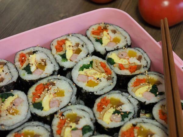 김밥은 한 끼 식사로서나 가벼운 간식으로서도 손색없는 음식입니다. 또 다양한 소스나 양념들과도 잘 어울리며, 참치김밥이나 치즈김밥, 돈가스 김밥과 같이 뒷맛이 느끼한 김밥이라면 라면이나 떡볶이, 국물 요리 등과 궁합이 잘 맞습니다.