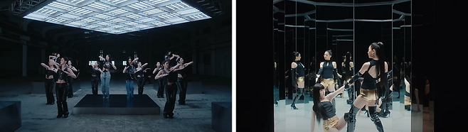 또한 ‘TILT (기울다)’라는 곡 제목에 맞게 걸맞은 시각적 장치를 안무로 구현한 점도 눈에 띄는데요. 아이린&슬기는 팔과 몸의 기울기로 저울, 시소를 연상케 하는 페어 안무를 선보였습니다. 이어지는 장면에서는 두 사람이 거울로 가득 찬 공간 속에서 서로를 밀어내거나 당기며 양면적인 관계를 표현했죠. 이렇게 정교한 안무와 퍼포먼스는 유닛 특유의 짜릿한 시너지와 쾌감을 선사합니다.