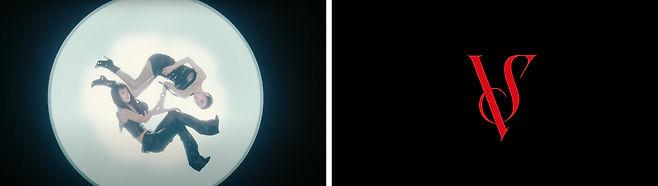 뮤직비디오의 후반부에서는 초반에 등장했던 구도를 다시 불러옵니다. 하지만 이번에는 두 사람이 가까운 거리에서 손을 맞잡고 있다는 점에서 차이를 보이는데요. 이는 앞서 이어졌던 서사를 마무리 짓는 듯한 장면으로, 끝내 한계를 넘어서 균형을 이루게 된 두 사람의 상태를 담아내는 것만 같죠. 그렇게 뮤직비디오는 마지막 컷의 붉은 로고로 강렬한 인상을 남기며 막을 내립니다. 아이린의 ‘I’와 슬기의 ‘S’를 겹쳐 표현한 로고 ‘VS’는 지난 앨범 [Monster]에서 두 사람의 합을 상징하던 ‘&’와는 확연히 반대되는 의미를 담고 있어요. 이번 유닛 서사가 처음부터 ‘대립’ 구도를 기반으로 시작했음을, 그리고 다양한 장치와 메시지를 통해 그 대립이 마침내 새로운 형태의 관계로 나아갔음을 알 수 있습니다.