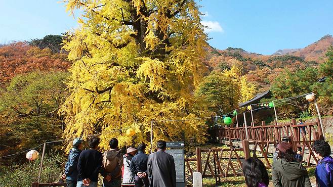 용문산 자락 아래, 용문사 경내에는 천 년을 훌쩍 넘긴 거대한 은행나무 한 그루가 황금빛으로 물들어 여행자들을 맞이합니다.
