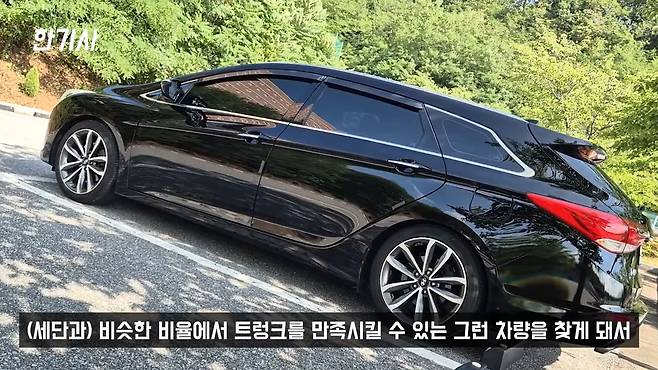 세단을 영국식으로 표현하면 '살룬(Saloon)'이라는 표현이 나오게 되는데 이 차량은 i40 살룬도 있거든요. 근데 그 모델은 전혀 고민하지 않았고요. 할머니를 모실 때 휠체어를 같이 실어야 되다 보니까 넓은 트렁크 공간이 필요해서 살룬 모델은 전혀 고민하지 않았어요. 그리고 또 제가 요즘 세차에 빠져 있는데 세차용품들을 하나둘씩 사다 보니까 공간이 생각보다 좀 많이 필요하더라고요. 그래서 왜건 모델로 최종 선택하게 되었습니다.