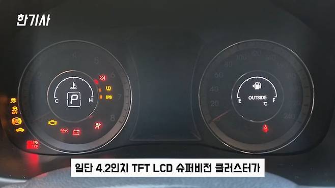 일단 4.2인치 TFT LCD 슈퍼비전 클러스터가 굉장히 시인성이 좋게 들어가 있고요. 핸들 또한 묵직하게 자리를 하고 있으면서 그리고 D spec 트림 한정으로 센터패시아나 도어 트림 쪽에 카본 가니쉬 같은 게 들어가거든요. 그러다 보니까 조금 스포티한 느낌도 가미돼서 정말 괜찮은 것 같아요. 순정 옵션으로 제공되고 있더라고요. 전체적으로 깔끔하고 담백한 실내 디자인이 무난무난하고 안정감 있게 들어가 있는 것 같아요.