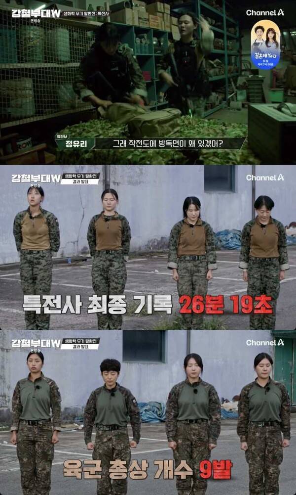 26일 방송된 채널A '강철부대W'에서는 육군과 특전사의 4강 토너먼트 생화학무기 탈환전 결과가 공개됐다.