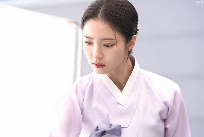 신세경은 밝은 색의 저고리를 입고 좀 더 화사하고 청초한 분위기로 눈길을 끌었다.