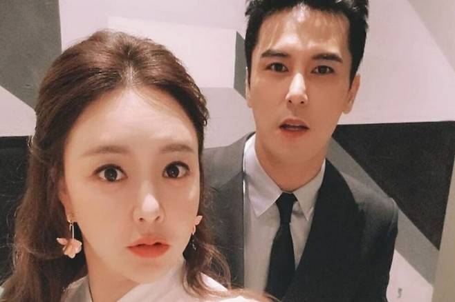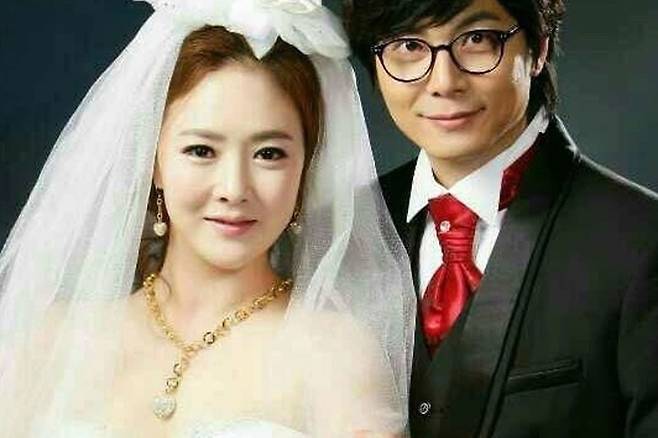 해당 사진은 웨딩드레스를 입은 금잔디가 턱시도를 입은 한 남성과 웨딩 촬영을 한 모습이었습니다.