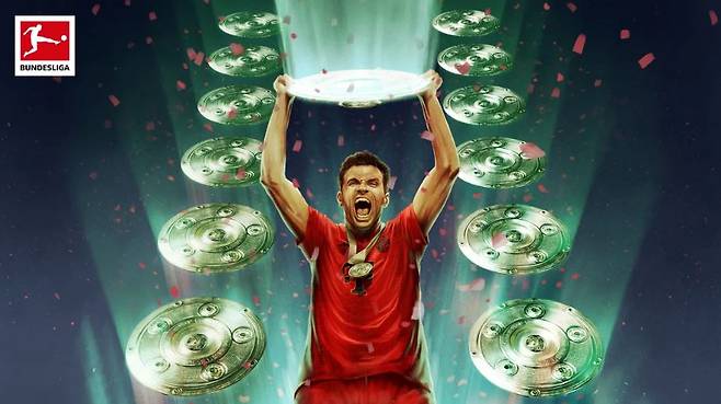 이어 "뮐러는 20년 넘게 뮌헨의 유니폼을 입었으며 2009년부터 뮌헨 1군에서 활약하고 있다. 우승을 차지할 때 항상 일원으로 활약했다. 특히 2012/13시즌부터 2022/23시즌까지 11회 연속 우승 트로피를 들어 올렸다. 이번 시즌 13번째 우승을 달성한 뮐러는 62년의 분데스리가 역사를 통틀어 유일한 랭킹 1위로 자리매김했다"고 설명했다.