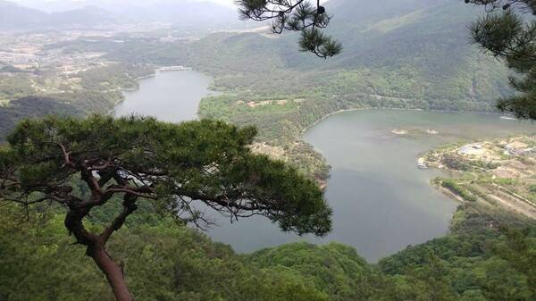 전망대에서 바라보는 괴산호는 마치 한 폭의 그림 같아 사진 찍기에도 딱 좋은 장소예요.