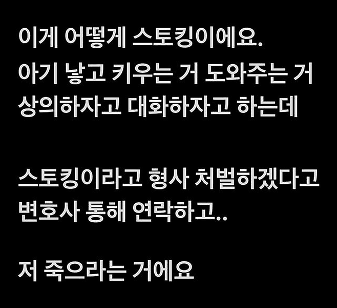 또한, A씨는 서 씨가 지난 4월 30일 자신의 주소지에 찾아와 클락션을 5분 이상 울리는 행동을 했다고 주장하며, 감금과 폭행 피해를 입었다고 밝혔습니다. 이 같은 상황으로 인해 A씨는 서 씨에 대한 법적 조치를 준비 중이라고 전했습니다.