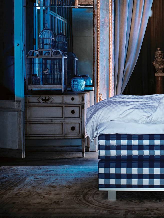아무래도 해스텐스 침대를 떠올리면 파란색 체크무늬가 가장 먼저 떠오르지 않을까. 침대를 살짝만 보고도 어떤 브랜드의 침대인지 알아채는 게 쉽지 않은데 이 블루체크 덕분에 해스텐스는 “우리가 바로 그 유명한 해스텐스예요”라고 굳이 설명할 필요가 없어졌다. 블루체크는 해스텐스의 4대 오너이자 예술과 디자인에 대한 애호가였던 잭 리데(Jack Ryde)가 만들었다. 그는 브랜드를 대표하는 고품질의 독특한 패턴을 만들고 싶어 했고, 1978년에 스웨덴의 가구 박람회에서 ‘Hästens Blue Check’를 처음으로 선보였다. 침대 디자인에 대한 고정관념을 깨고 싶었던 그의 시도는 사실 처음에는 박수를 받지 못했다.