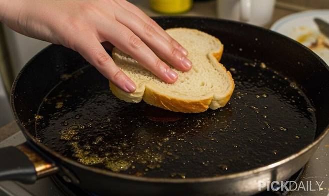 기름기가 많은 고기나 생선을 굽고 나면 생기는 흥건한 기름을 제거하는데 식빵이 유용하다. 식빵 한 조각을 이용해 팬을 쓱 닦아주면, 식빵이 기름기를 스펀지처럼 쏙쏙 흡수해줘 깔끔하게 제거된다.