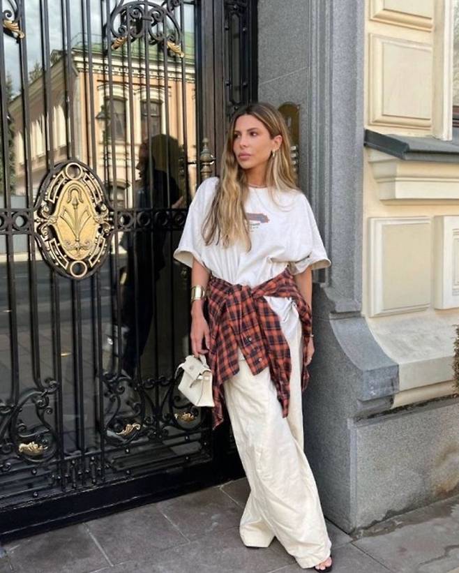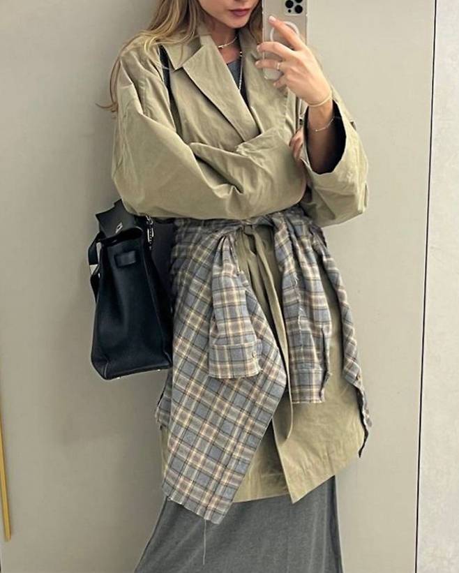 그 방법은 바로 체크셔츠를 허리에 묶는거에요.