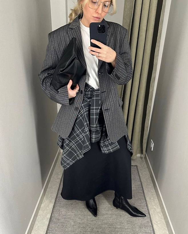 특히 블랙 스커트에 모노톤 체크셔츠 조합은 정말 추천하고 싶은데요. 긱시크 감성이 확 살아나면서도 은은하고 세련된 느낌이 나더라고요.