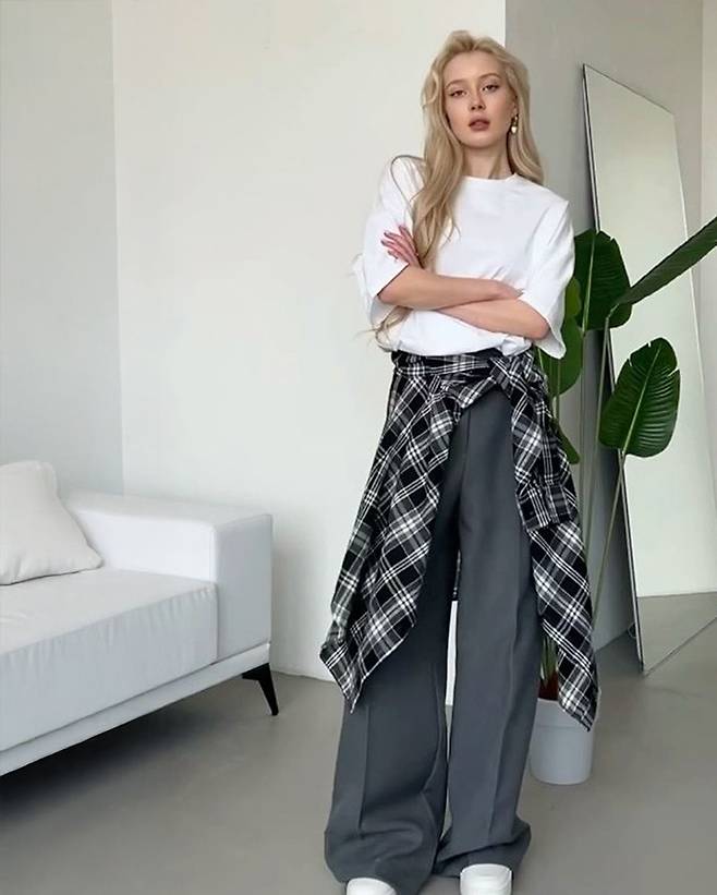 그 방법은 바로 체크셔츠를 허리에 묶는거에요.