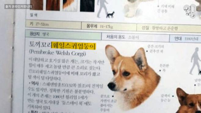 동물 전문가들이 웨일스 귀염둥이를 포함한 견종 목록을 보내왔고, 국립국어원에서 어법에 맞는지 검토한 뒤 문제없다고 판단해 사전에 올렸을 거라는 거다. 이 귀여운 단어가 정말 업계에서 쓰이던 말이 맞는지 찾아봤는데, 오래된 백과사전에 이렇게 ‘웨일스 귀염둥이’라고 적혀있던 자료가 있긴 하다. 아무 근거 없이 실린 단어는 아니란 거다.
