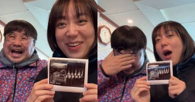공개된 영상에서 이은형은 초음파 사진을 보여주며 함박 웃음을 짓고 있고, 강재준은 눈물을 훔치며 "고생했어"라고 이은형을 안아주며 기쁨을 나타냈습니다.